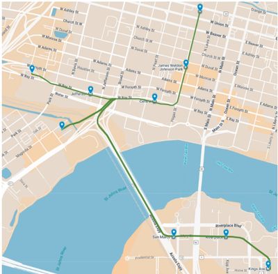 As part of a study concerning the replacement/conversion of the Jacksonville Skyway, an automated people mover, Insight is conducting traffic operations analysis and demand forecasting to support the alternatives analysis for the Skyway. Jacksonville hopes to adapt the existing Skyway monorail infrastructure to integrate with an existing Autonomous Vehicle (AV) pilot by converting the existing Skyway Infrastructure into an elevated roadway for AVs. However, before the project could be scoped, Jacksonville needed to know more about the transportation demand or transit ridership potential along the corridor to help define the scope of the Skyway rehabilitation and expansion phase (before a full Project Development & Environment (PD&E) phase).